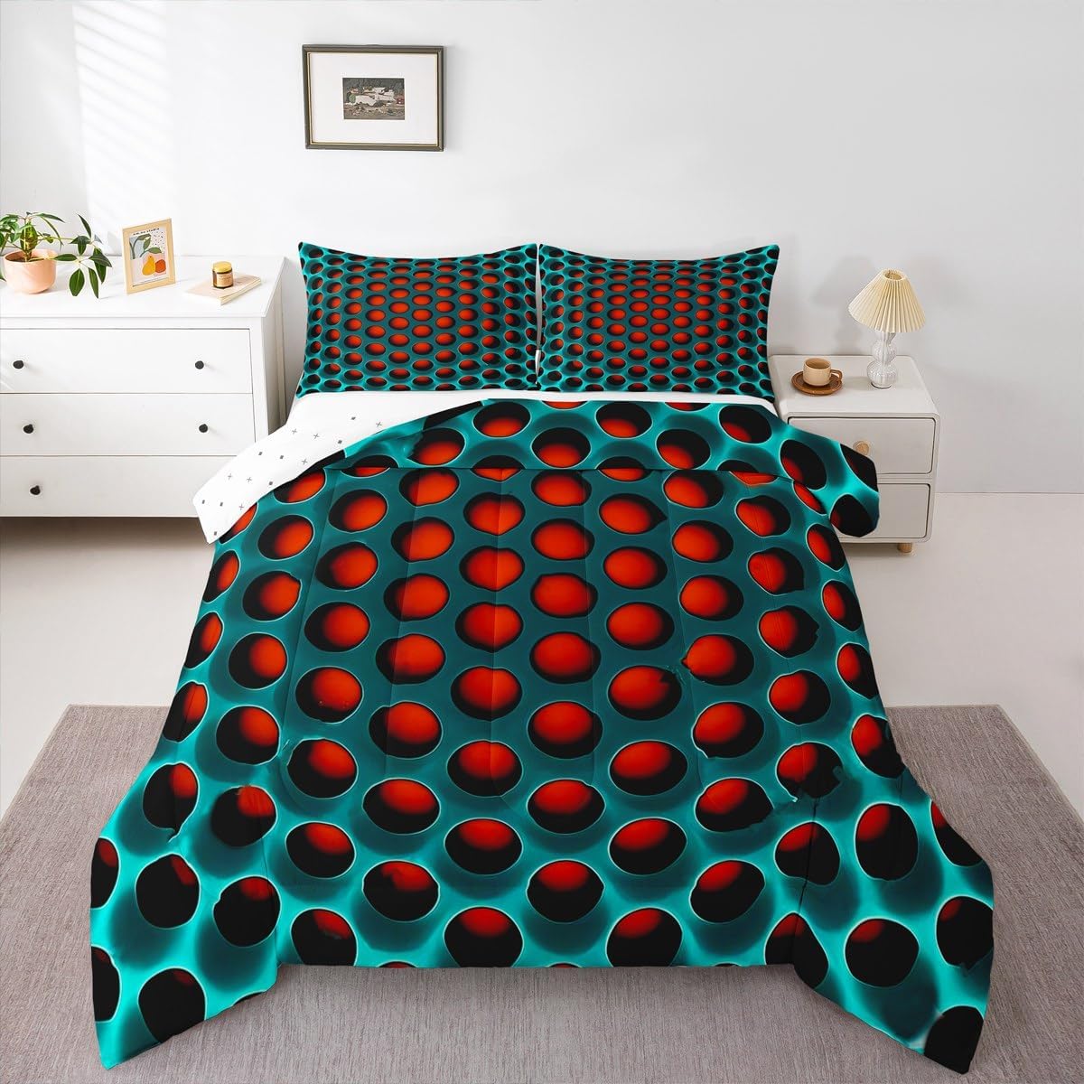 Size Information Toddler size: 1 Down Comforter 42"W x 58"L, 1 Quilted Pillowcase 30"W x 20"L. Twin size: 1 Down Comforter 68"W x 90"L, 1 Quilted Pillowcase 30"W x 20"L. Full size: 1 Down Comforter 79"W x 90"L, 2 Quilted Pillowcases 30"W x 20"L. Queen size: 1 Down Comforter 90"W x 90"L, 2 Quilted Pillowcases 30"W x 20"L. King size: 1 Down Comforter 104"W x 90"L, 2 Quilted Pillowcases 36"W x 20"L. Versatility We have many kinds of styles for you to choose. You can easily find a product that suits the style of your room. The item is not only Suitable for your home, bedroom, guest room, living room, or rv, your families, friends, relatives, boyfriend,girlfriend. Modern Design The luxury aesthetic comforter set is made reactive printing and dyeing process. The pattern is clear, the color is bright, which will not fade after repeated washing. Personalized As a manufacturer of digital printed home textiles, we follow current trends and bring you the latest and stylish home textile products. The item will make the room decorated in exquisite taste. We sincerely hope you will love the bed set.