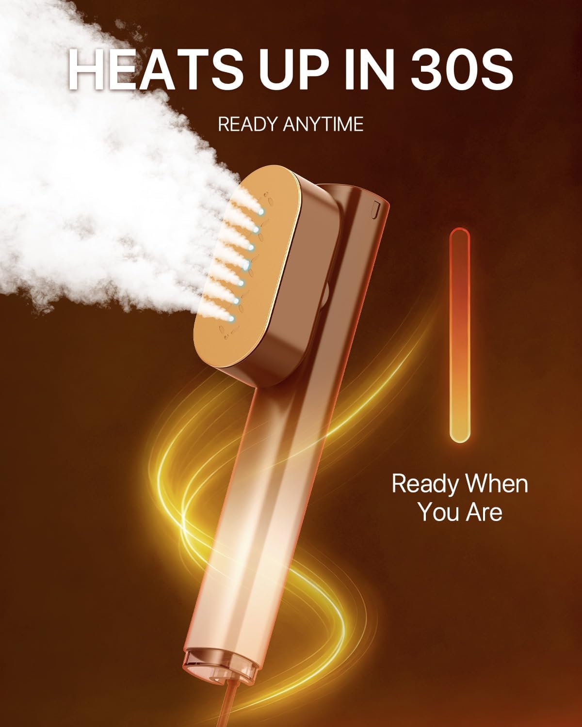 | Product Benefits | Faster outfit preparation The 950W steam power smooths wrinkles in minutes, helping you get ready quickly and start your day with a polished look., Gentle on fabrics Dual steam levels treat delicate materials with care while still providing enough strength for thicker garments, helping clothing last longer., Low maintenance and easy to use The detachable water tank, consistent steam flow, and simple operation keep daily garment care convenient and cost-effective., Professional results without an ironing board Steam garments while they hang or lay flat, saving space and eliminating the hassle of setting up a full ironing station., Restores packed clothes with ease Travel-compressed shirts and dresses regain their shape with a few passes, making trips, vacations, and business travel stress-free., Travel-friendly convenience Its compact, lightweight design slips easily into luggage or a daily bag, giving you quick garment care wherever you go without adding bulk. |