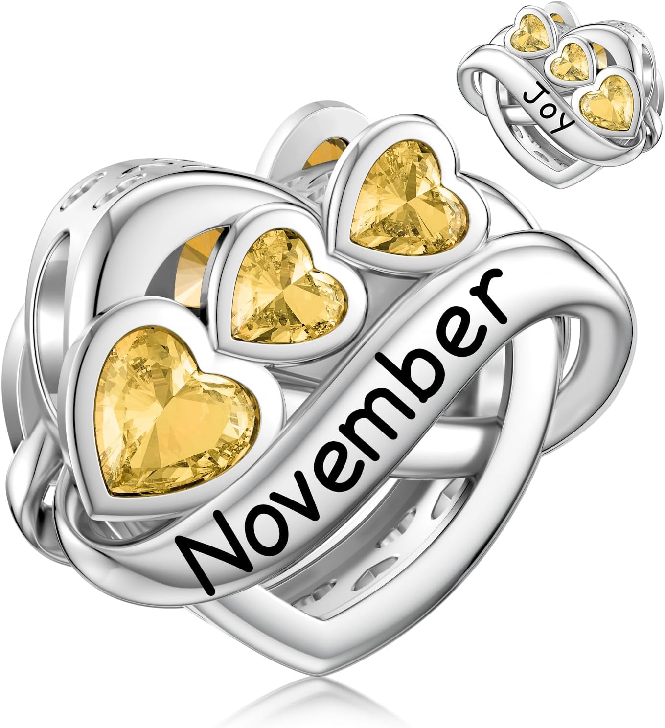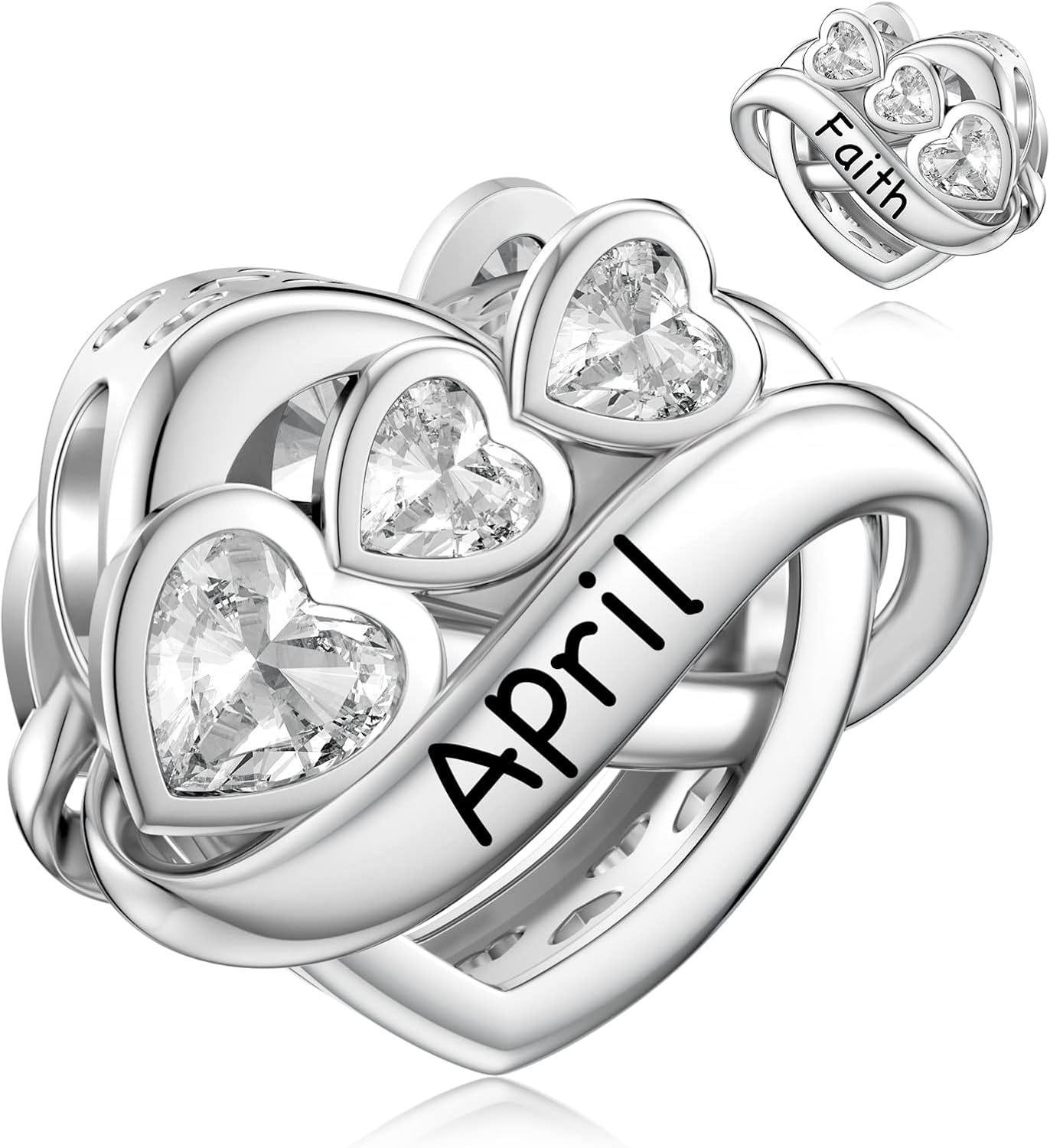 JIAYIQI Birthstone Charm for Charms Bracelet, 925 Sterling Silver Endless Love Heart Charm Engraved Symbolizes, Happy Birthday Charms for Bracelet Necklace