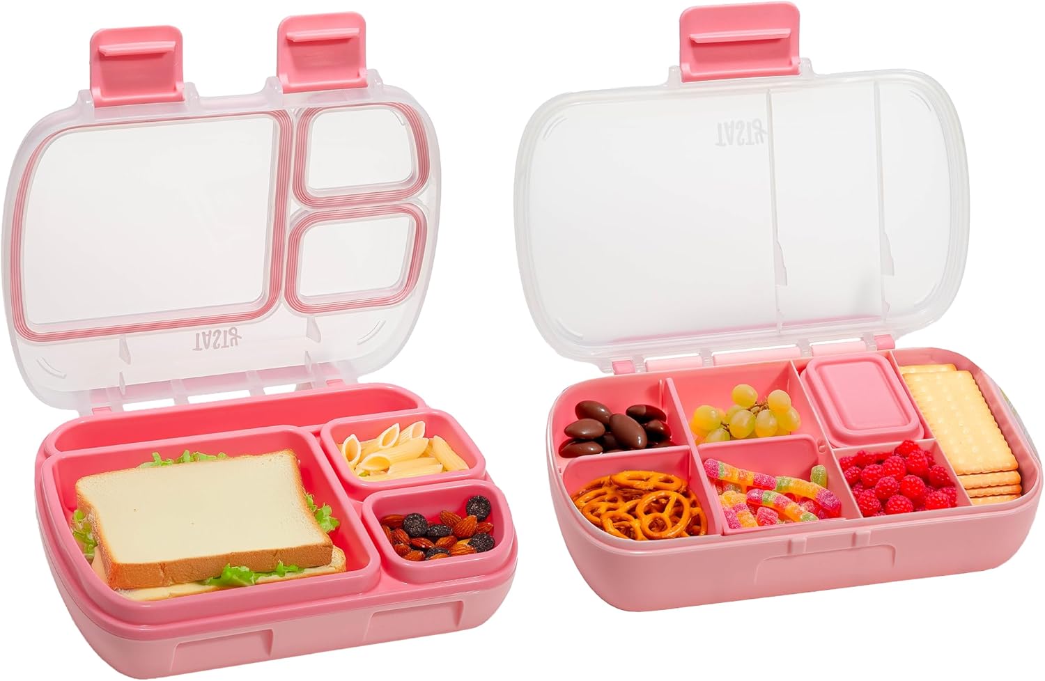 Take meal prep to the next level with the Tasty 2-Piece Snack & Lunch Box Set, designed for ultimate convenience and organization. The bento-style lunch box features 4 compartments with a removable food tray for easy, on-the-go meals. The snack box features 7 compartments with two removable dividers and a 2.9 oz dip container. Customize meals your way, making sections bigger or smaller as needed. Both boxes feature a built-in phone stand, so you can catch up on your favorite videos while you eat. With foldable carry handles for easy transport and secure latches to keep everything in place, this set is perfect for any on-the-go munching. Hand wash only to maintain long-lasting durability. Get ready to snack and lunch smarter with the Tasty 2-Piece Snack & Bento Box Set—because eating on the go should be fun, functional, and stress-free!