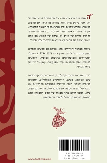 אסופה נדירה של דרשות, משלים ותובנות מתוך כתבי רומי, כולל תרגומים ראשונים לעברית. דרך שפה פיוטית ועמוקה, הספר פותח דלת אל לב הדרך הסופית ומזמין אותנו להשתתף בריקוד התודעה של האדם המחפש אהבה, משמעות ואת אלוהים.